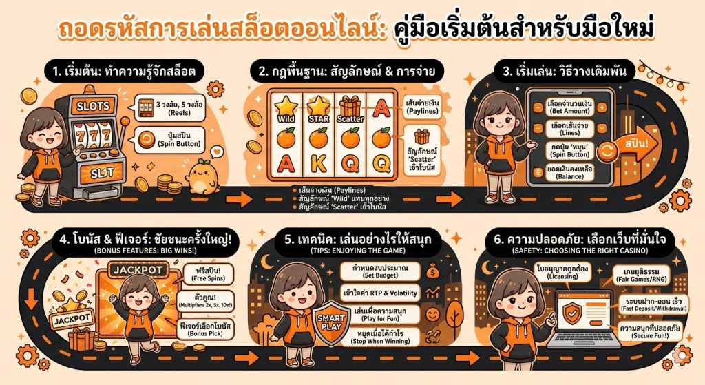 บทความนี้จะพาคุณไปรู้จักกับพื้นฐานทั้งหมดของเกมสล็อตออนไลน์ ตั้งแต่โครงสร้างเกม วิธีหมุนสล็อต การตั้งค่าเดิมพัน เทคนิคสำหรับมือใหม่ รวมถึงแนวทางการเล่นอย่างมีระบบ เพื่อให้คุณสามารถเริ่มต้นได้อย่างมั่นใจและสนุกกับเกมได้อย่างเต็มที่